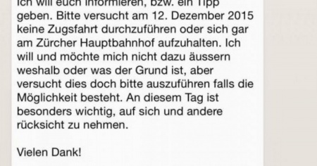 L’uomo chiedeva di non recarsi alla stazione ferroviaria di Zurigo il 12 dicembre