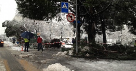 SAVOSA - La neve "pesante" che sta cadendo in queste ore sta provocando diversi disagi e anche molti danni alla vegetazione presente lungo le strade. Diverse le segnalazioni di alberi caduti. Alcune piante sono cadute sul campo stradale in alcuni punti del Luganese: in particolare sulla strada Caslano-Neggio e a Sonvico. Ma l'episodio più grave riguarda un grosso pino marittimo caduto alla fermata del bus Valgersa a Savosa. Fortunatamente la caduta dell'albero non ha coinvolto nessuno e non si registrano feriti.