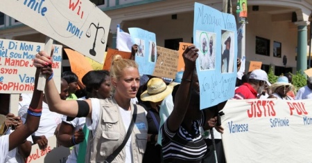 Marcia per la giustizia - Il popolo di Haiti, spinto anche da Handicap International, ha marciato fino al palazzo del Parlamento per chiedere giustizia dopo la tremenda morte delle tre donne. «Anch’io ho partecipato alla marcia. Psicologicamente ero distrutta. Ho pianto. Avevo tanta rabbia dentro».