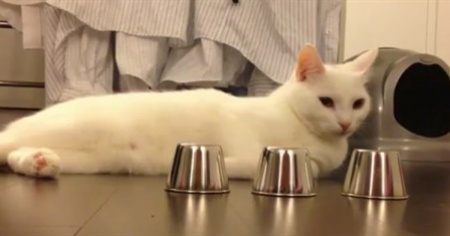 Il video di questo gatto fuori dal comune sta facendo il giro del web. Sfidato dalla padrona al gioco dei bussolotti il felino, senza nemmeno impegnarsi troppo, non sbaglia un colpo.