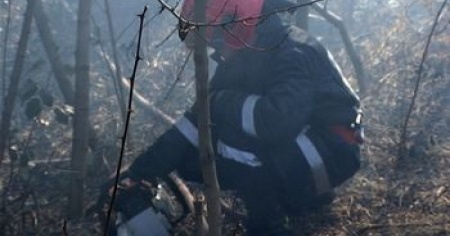 Incendio di bosco sotto il campo di calcio
