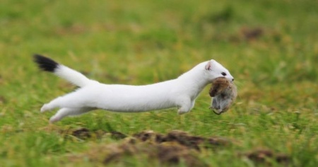 Esile e scattante - Slanciato, dal peso di circa 300 grammi e lungo una trentina di centimetri, l’ermellino si intrufola agilmente nelle gallerie scavate dai piccoli roditori e nei mucchi di legna o sterpaglie. Ma, come specifica Pro Natura, essere snelli, agili e scattanti ha il suo prezzo. «Per disporre dell’energia necessaria a mantenersi caldo e in forma, questo piccolo animale deve mangiare ogni giorno l’equivalente della metà del suo peso».