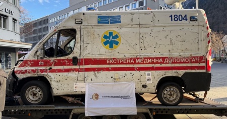 Colpita a Kharkiv - L’ambulanza esposta è stata colpita a Kharkiv durante i primi giorni del conflitto ed è una testimonianza diretta dei rischi affrontati quotidianamente dal personale sanitario nelle zone di guerra.