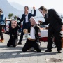 Sfilano a Lugano con le maschere di Cassis, Trump e Netanyahu