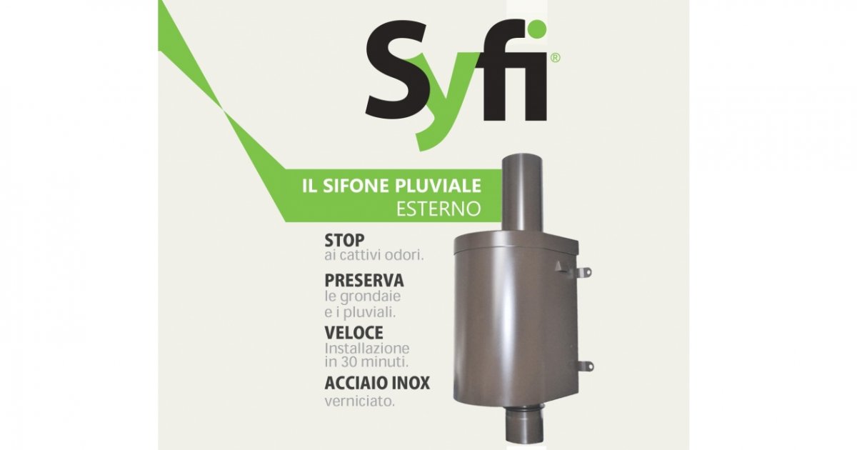 Syfi è un dispositivo a sifone per tubo pluviale esterno che: