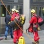 I due lavavetri si trovavano sulla facciata dell'edificio della Europaallee quando il montacarichi è rimasto bloccato