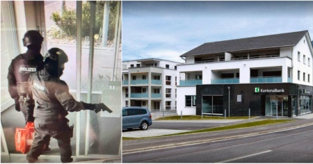 La polizia è alla ricerca di due persone, alte tra i 175-180 cm. Portavano con sé una borsa con tanto di croce svizzera disegnata. Oltre al passamontagna avevano anche un elmetto, stivali neri da combattimento ed erano entrambi armati.