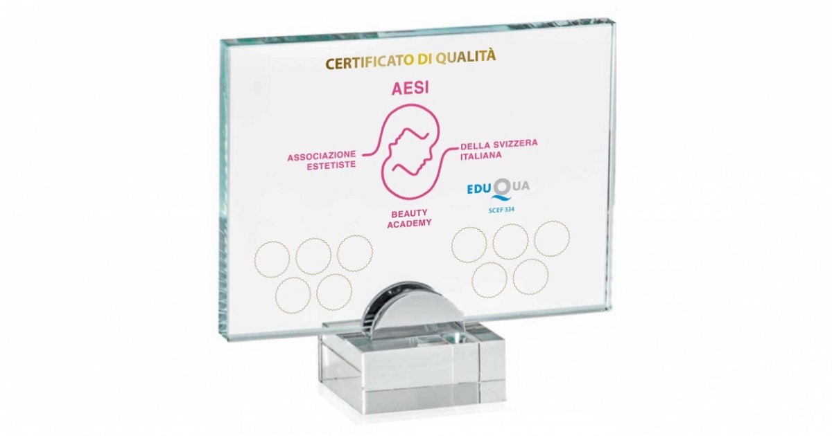 Con il crescente numero di istituti di bellezza in Ticino, alfine di TUTELARE LA CLIENTELA, l’associazione di categoria delle estetiste (AESI), ha pensato di fare cosa gradita inserendo un certificato di qualità con una targa da esporre in istituto per i centri associati a garanzia di massimi livelli di professionalità e non solo.
