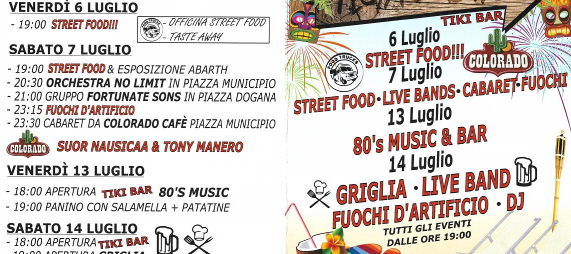 Sabato la griglia proporrà un vasto menù da gustare ascoltando la band Easy Sunset; alle ore 23.00 momento pirotecnico; si proseguirà poi con musica (Dj).
