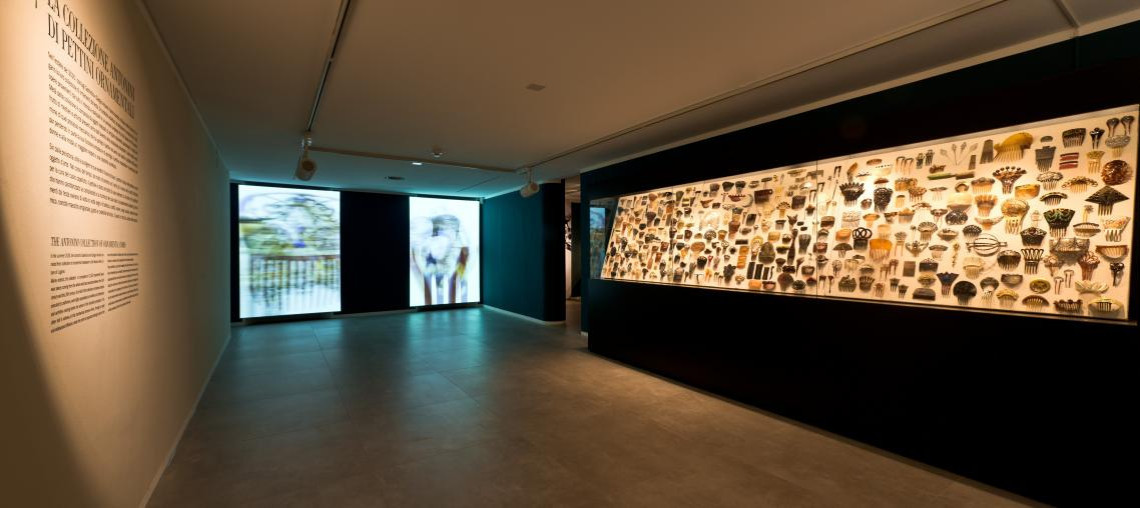 A Villa Malpensata sono esposti circa 700 pettini fra i 1’182 donati al MUSEC dai coniugi Gabriella e Giorgio Antonini. La mostra è completata da un corredo iconografico che aiuta il visitatore a contestualizzare il pettine ornamentale.