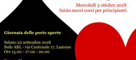 Ti piace giocare a carte? Vuoi esercitare la mente? Vuoi ampliare la tua rete di conoscenze e amicizie? Se la risposta ad anche una sola delle domande è "sì", allora devi presenziare alla giornate delle porte aperte promossa dall'Associazione Bridge Lugano, sabato 22 settembre a Lamone in via Cantonale 17, a partire dalle ore 15.00. Non esitare, ti aspettiamo!
