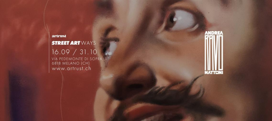 La mostra presenta opere su tela e su carta di Andrea Ravo Mattoni, street artist italo-svizzero con cui Artrust collabora già dalle precedenti edizioni delle mostre Street Art. Noto per i suoi grandi murales realizzati con lo spray che replicano capolavori dell’arte classica e per il suo progetto artistico di “recupero del classicismo nel contemporaneo”, Ravo è reduce da un 2018 che lo ha visto premiato all’Arte Laguna Prize 2018 di Venezia, impegnato in collaborazioni con il Musée du Louvre e con l’ICART, attivo sul mitico Mur Oberkampf e per la prima volta anche con un’opera in Canton Ticino, in occasione del Long Lake Festival di Lugano.