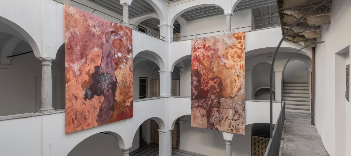 Le opere di Monia Ben Hamouda combinano astrazione e figurazione, evocando forme e tracce di memoria.