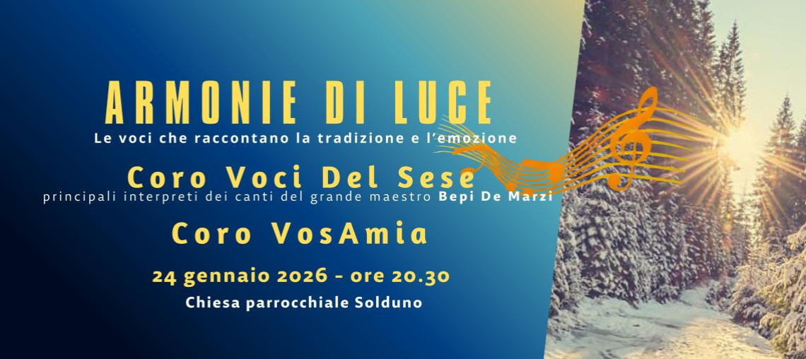 Il gruppo vocale Vos Amia di Locarno propone una serata di ascolto che sarà arricchita dalla presenza del prestigioso coro "Voci del Sese" degno erede e tra i principali interpreti della musicalità corale del grande Maestro Bepi De Marzi.