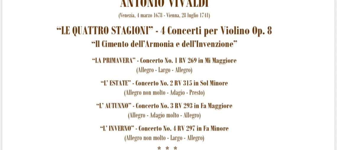 Sabato 7 marzo 2026 alle ore 20,45 presso la Chiesa San Michele di Arosio, si terrà un concerto dei Solisti dell’Orchestra da Camera “Arrigo Galassi”. Il complesso, fondato nel 1981 e diretto da Leandro Galassi e che quest'anno festeggia il 45° Anniversario di Fondazione, in questa occasione proporrà una delle pagine più note del panorama musicale, "Le Quattro Stagioni Op. 8" di Antonio Vivaldi. L’organico sarà composto da Daniela Zanoletti Violino Solista, Alessia Rosini Violino I°, Paola Genellini Violino II°, Patrizia De Santis Viola, Marlise Goidanich Violoncello, Sofia Bianchi Contrabbasso, Alessandro Aletti Clavicembalo e Leandro Galassi Direttore. Il concerto è organizzato e prodotto dall’Associazione per l’Orchestra da Camera “Arrigo Galassi. L’ingresso è libero.