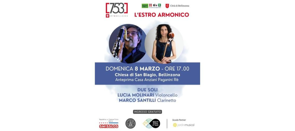 L’associazione 753 Arte Bellezza presenta il primo appuntamento della rassegna L’Estro Armonico 2026, in programma domenica 8 marzo alle ore 17.00 presso la Chiesa di San Biagio a Bellinzona.