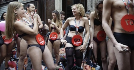 A Roma in mutande davanti al negozi per i saldi