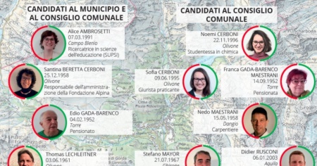 Sul nuovo sito www.areasinistrablenio.ch si trovano il programma elettorale e i candidati per il Municipio e per il Consiglio comunale di Blenio. L’Area di Sinistra si presenta con dodici persone che si candidano al Consiglio Comunale, di cui cinque anche al Municipio. Con Marino Truaisch, municipale uscente, corrono per il Municipio Alice Ambrosetti (ricercatrice in scienze dell'educazione SUPSI), Santina Beretta Cerboni (responsabile amministrativa Fondazione Alpina), Edio Gada-Barenco (pensionato) e Thomas Lechleitner (fumista/costruttore di riscaldamenti a legna). Per il Consiglio comunale sono in lista, oltre ai nomi già menzionati, gli uscenti Sofia Cerboni (praticante giurista), Nedo Maestrani (carpentiere) e Fausto Rusconi (impiegato La Posta) con le nuove leve Noemi Cerboni (studentessa in chimica), Franca Gada-Barenco (pensionata), Stefano Mayor (agente di polizia) e Didier Rusconi (apprendista operatore in automazione).