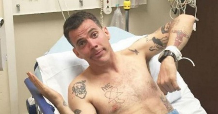 Incidente di percorso per Steve, che dalla foto però sembra non aver perso il sorriso. Il 2016, finora, è stato un anno da dimenticare per Steve, che, a marzo, ha rivelato di essersi separato dalla fidanzata Kat Von D.