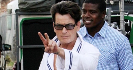 Charlie Sheen sul set con la ex moglie