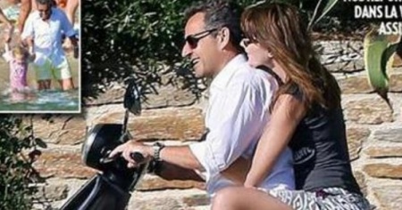 PARIGI - Dimenticate le vicende giudiziarie che nei giorni scorsi lo hanno portato alla ribalta della cronaca, Nicolas Sarkozy si gode le vacanze insieme alla moglie Carla Bruni e alla loro figlia Giulia a Cap Nègre, in Francia. È qui che il settimanale Paris Match li ha paparazzati in versione coppietta “in love” a bordo di una Vespa, pubblicando poi la foto in copertina con il titolo «Due innamorati in vacanza. Sport, “far niente” e... Giulia». Peccato che nello scatto nessuno dei due porti il casco: e su Internet impazzano polemiche e fotomontaggi ironici, come quello in cui compaiono come per miracolo due caschi sulle loro teste.