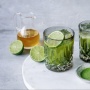 - Mocktail: mettere nello shaker 4 cl di sciroppo di albicocca, il succo di limetta, il matcha messo da parte e i cubetti di ghiaccio, agitare bene per ca. 30 sec., quindi versare nei bicchieri.