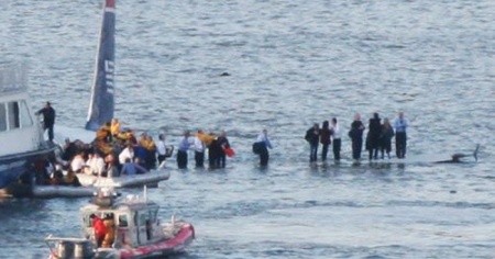 L'aereo affonda, tutti salvi