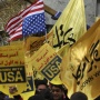 Bruciate bandiere degli Stati Uniti e di Israele - Al grido di "Abbasso gli Stati Uniti" e "Abbasso Israele", manifestanti iraniani hanno dato fuoco stamani alle bandiere dei due Paesi nel raduno per il 40° anniversario dell'occupazione dell'ambasciata americana a Teheran, che diede inizio alla crisi degli ostaggi.