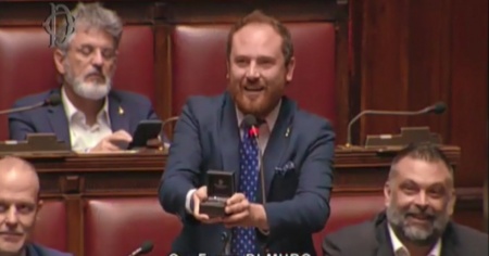 Il deputato leghista Flavio Di Muro ha interrotto la votazione sul decreto legge sui terremoti per chiedere la mano della sua compagna