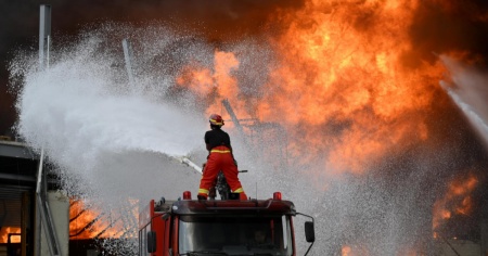 Le fiamme si sono propagate all'interno di un deposito contenente barili d'olio industriale.
