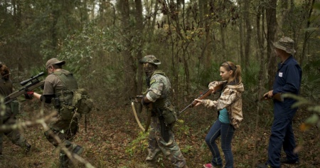 ReutersUna ragazzina partecipa a un corso di survivalismo tenuto dal North Florida Survival Group.