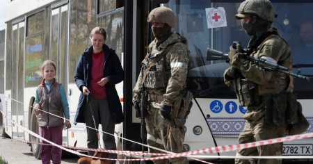 REUTERSL'evacuazione dei civili da Mariupol.I civili stanno lasciando la Azovstal