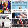 I principali quotidiani statunitensi ne danno notizia senza intaccare il loro consueto aplomb. Il Washington Post annuncia «l'alba di una nuova era di Trump». Il New York Times ne enfatizza l'energia con un «Trump storms back», "copiato" anche dall'Arizona Republic. Qualche licenza poetica in più se la concedono, senza sorprese, il New York Post, con un doppio senso che non necessita di traduzioni - "Life of The Party" - ma anche il San Francisco Chronicle, che dedica la copertina a Kamala Harris con un intraducibile «Trumped» sopra la testa.