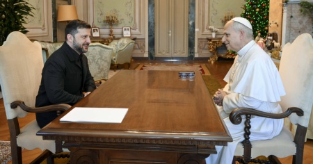 A villa Barberini, Zelensky è stato accolto dal vice reggente della casa pontificia l'agostiniano padre Edward Daniang Daleng. «Durante il cordiale colloquio, il quale ha avuto al centro la guerra in Ucraina - riferisce un bollettino della sala stampa della Santa Sede - il Santo Padre ha ribadito la necessità di continuare il dialogo e rinnovato il pressante auspicio che le iniziative diplomatiche in corso possano portare ad una pace giusta e duratura. Inoltre, non è mancato il riferimento alla questione dei prigionieri di guerra e alla necessità di assicurare il ritorno dei bambini ucraini alle loro famiglie».