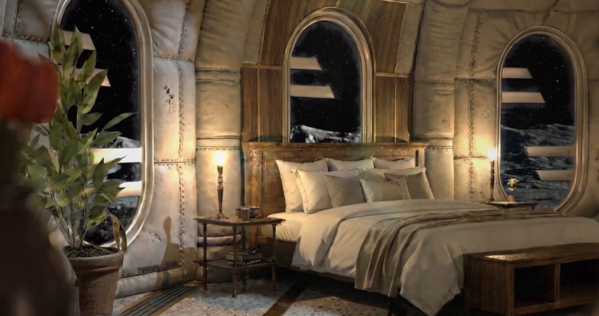 GRU SpaceL'ipotetica vista da una delle camere dell'hotel lunare.