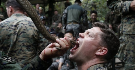Addestramento estremo: bere sangue di serpente e mangiare scimmie