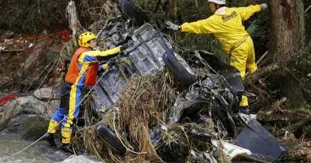 Le ricerche dei sopravvissuti vanno avanti senza sosta su un'area che appare paralizzata dopo il verificarsi di almeno 146 frane in 19 prefetture, secondo le rilevazioni del ministero delle Infrastrutture.