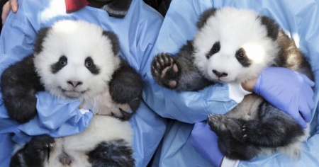 I piccoli panda sono i primi della loro specie a essere nati in un zoo in Germania. I due panda adulti invece, Meng Meng e Jiao Qing, sono in «prestito» dalla Cina per 15 anni.