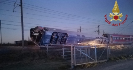 LODI - Incidente sulla linea ferroviaria ad alta velocità nei pressi di Livraga, in provincia di Lodi, a sud-est di Milano, in Lombardia: un treno è deragliato e almeno due vagoni, oltre alla motrice del Frecciarossa, si sono ribaltati. Al momento si contano due vittime, due macchinisti. Una trentina di persone sarebbe rimasta ferita.