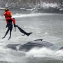 Un'auto è finita nelle acque gelide delle cascate, ma nonostante gli sforzi dei soccorritori non c'è stato nulla da fare