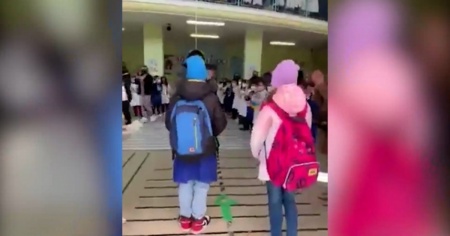 Nel video si vedono due bambini che prendono per mano i nuovi arrivati e li accompagnano nelle rispettive classi. «Spero che il nostro calore possa compensare il dolore e le perdite», ha dichiarato la dirigente scolastica Maria Barone.