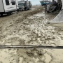 Il fango, conseguenza di una violenta tempesta, arriva fino alle caviglie
