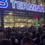 Decine di persone hanno preso d'assalto la pista brandendo bandiere palestinesi e mostrando atteggiamenti aggressivi.