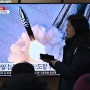 La gente guarda da uno schermo televisivo il test missilistico nordcoreano, in una stazione ferroviaria di Seul il 14 gennaio 2024.