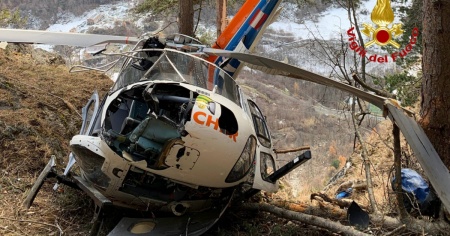 Cade un elicottero con 4 persone a bordo: tutti salvi