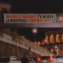 Sullo striscione, firmato da "Cambiare Rotta", è scritto «Benvenuto presidente La Russa (il nome è a testa in giù rispetto alle altre parole, ndr). La resistenza continua».