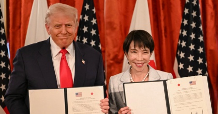 Takaichi ha da parte sua affermato a Trump che vuole «realizzare una nuova età dell'oro per l'alleanza Giappone-Usa». La premier giapponese ha anche ringraziato Trump per la «sua amicizia» con il suo predecessore Shinzo Abe, assassinato tre anni fa (il killer si è dichiarato colpevole proprio oggi).