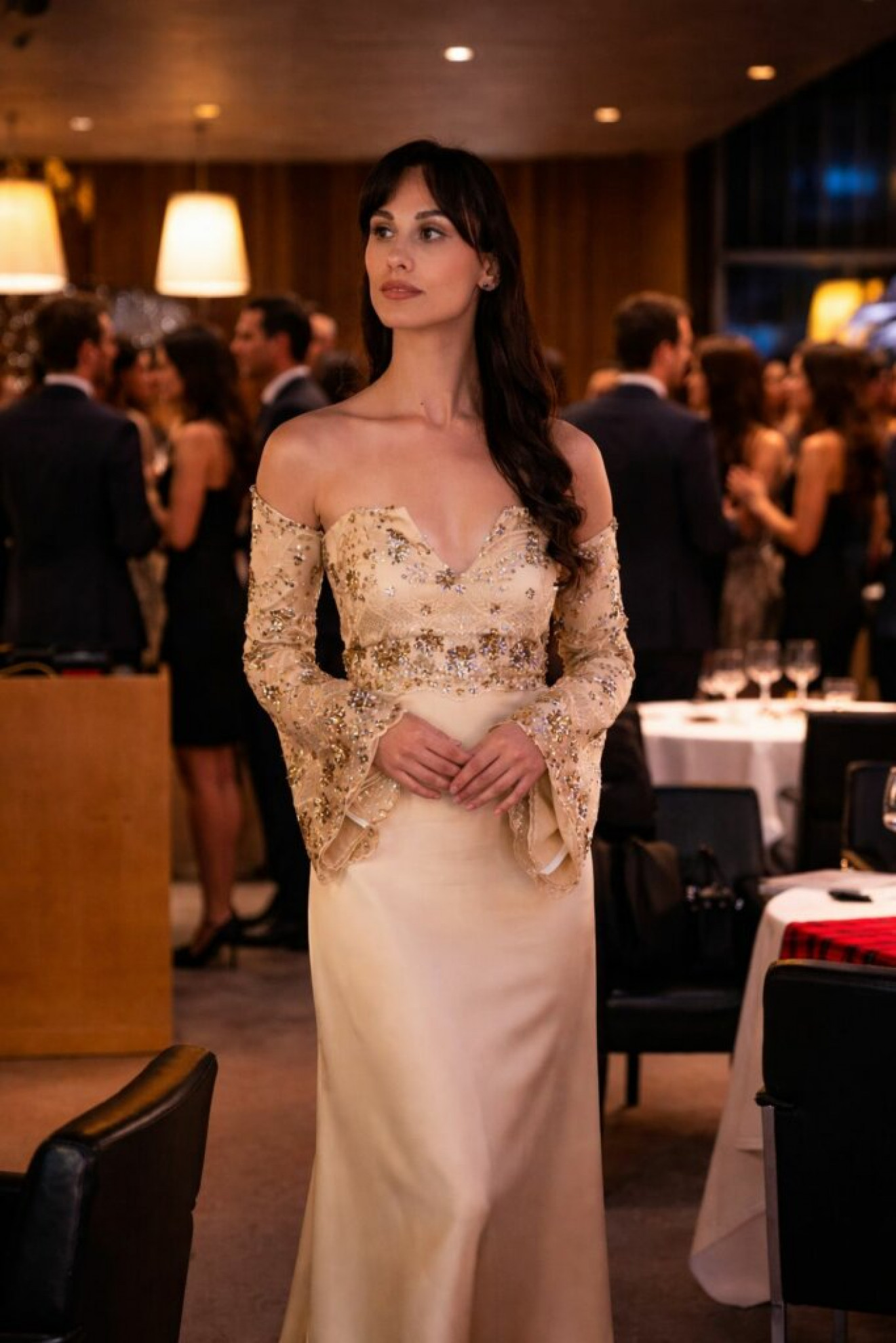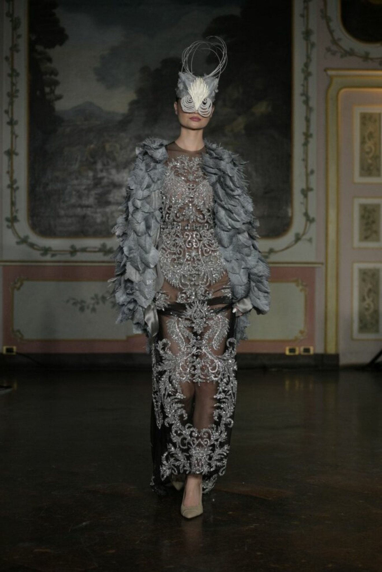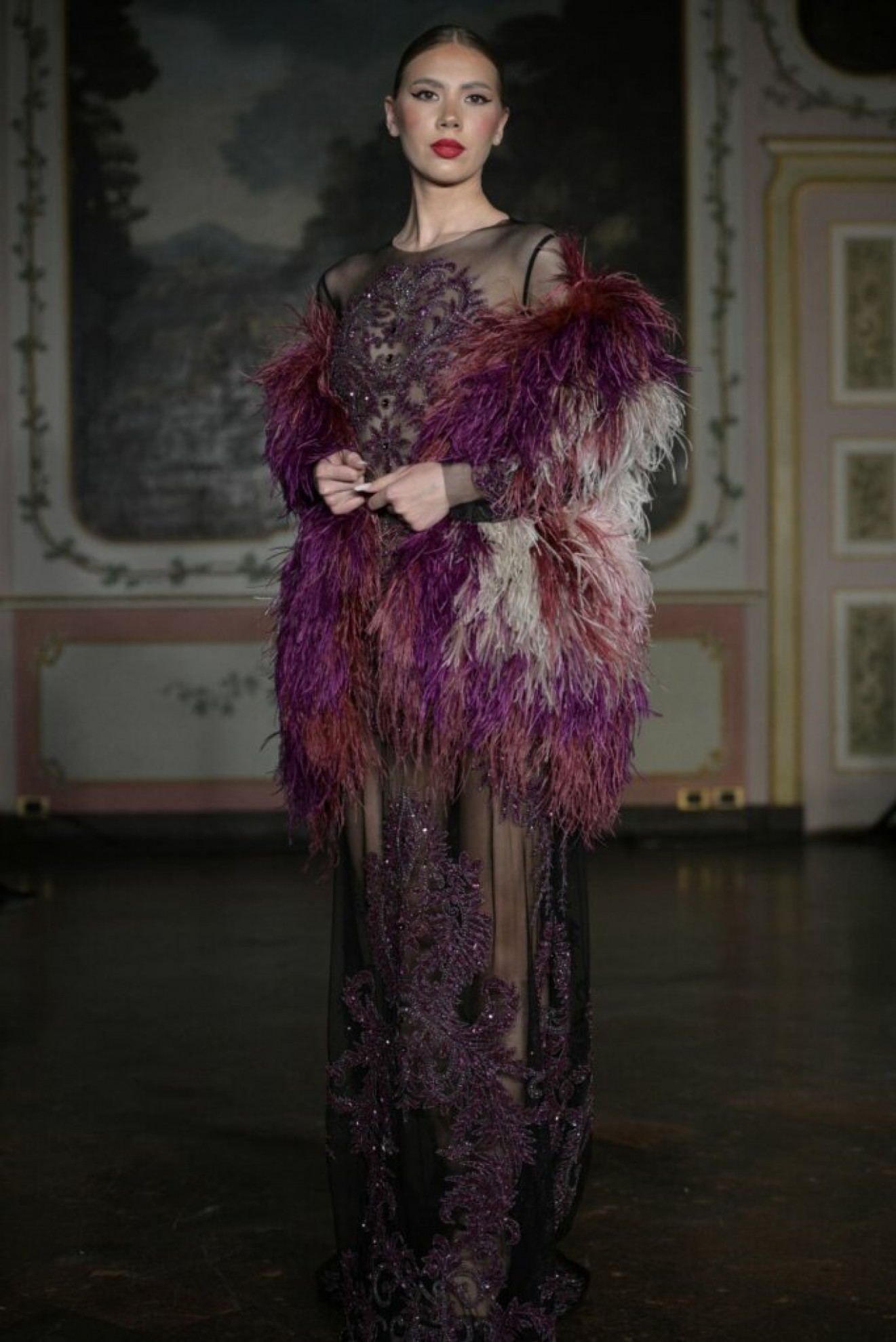 Per la serata, la sua passerella ha mostrato la collezione “L’Oriente di Anton Giulio Grande”, con creazioni ispirate alla magia e al mistero dell’Oriente, terra di fascino e sensualità. Le mise, caratterizzate da ricami mirabolanti e fiori stilizzati, fanno emergere una raffinata maestria artigianale e un’attenzione meticolosa per il dettaglio. I tessuti utilizzati, tulle e raso di seta, diventano tele su cui si arrampicano, attraverso preziosi fili d’oro e d’argento, motivi della natura carichi di significati filosofici.