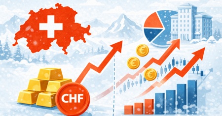 Il 2025 ha premiato gli asset rifugio: tensioni geopolitiche e rallentamento globale hanno spinto il metallo giallo, mentre l’apprezzamento del franco ha deprezzato, in termini contabili, i portafogli in valuta estera. È la combinazione tipica dei cicli risk-off: oro su, valute rifugio (CHF) forti, attivi esteri sotto pressione.