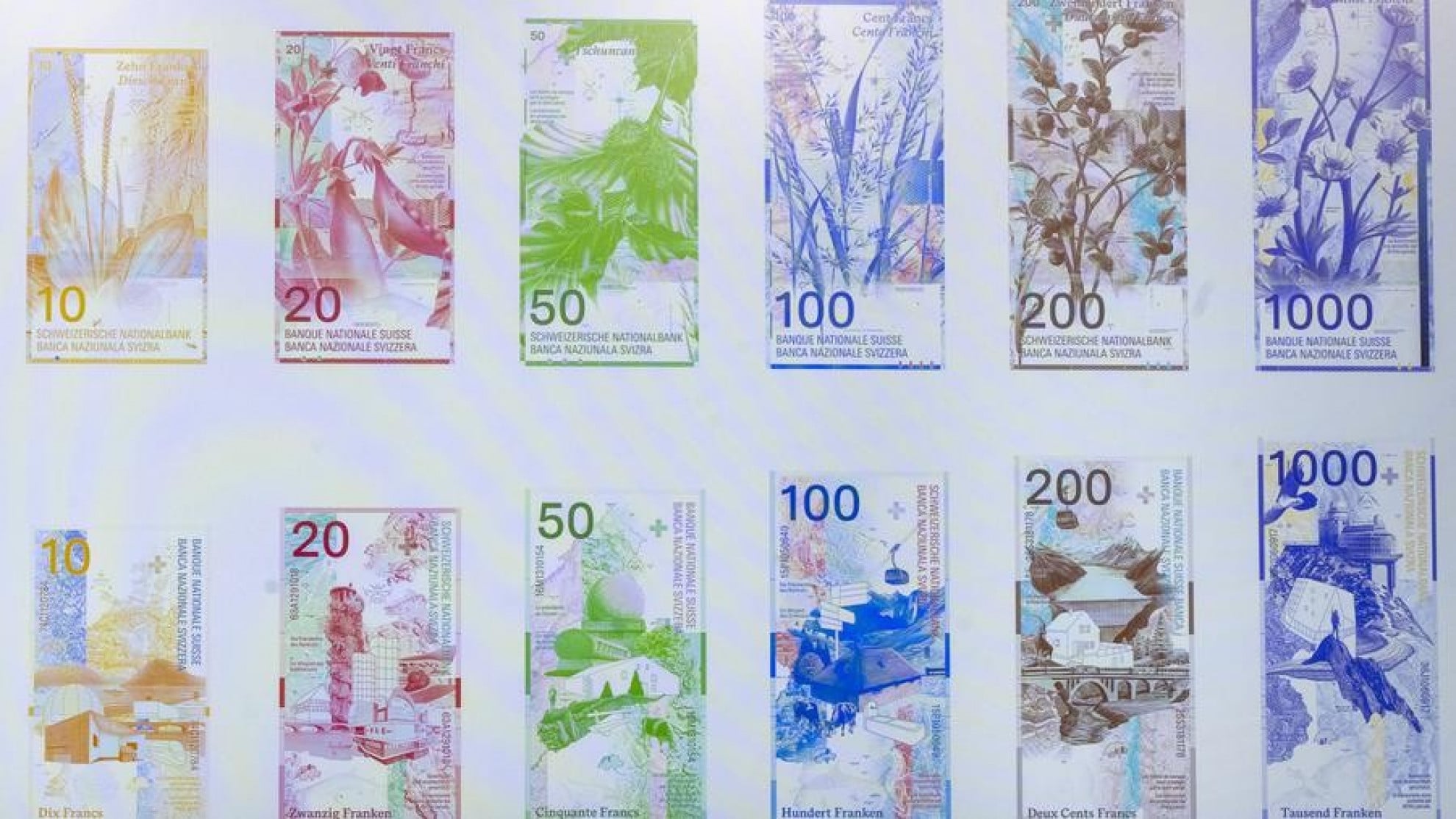 Il progetto non ruota attorno a personaggi celebri, ma al tema scelto dalla BNS per la nuova serie, “La Svizzera, varietà in rilievo”. L’idea sviluppata da Emphase rappresenta i sei piani altitudinali del Paese, dalle zone più basse fino all’alta montagna. Sul recto dei vari tagli compaiono piante indigene delle diverse altitudini;